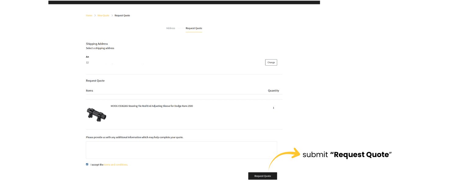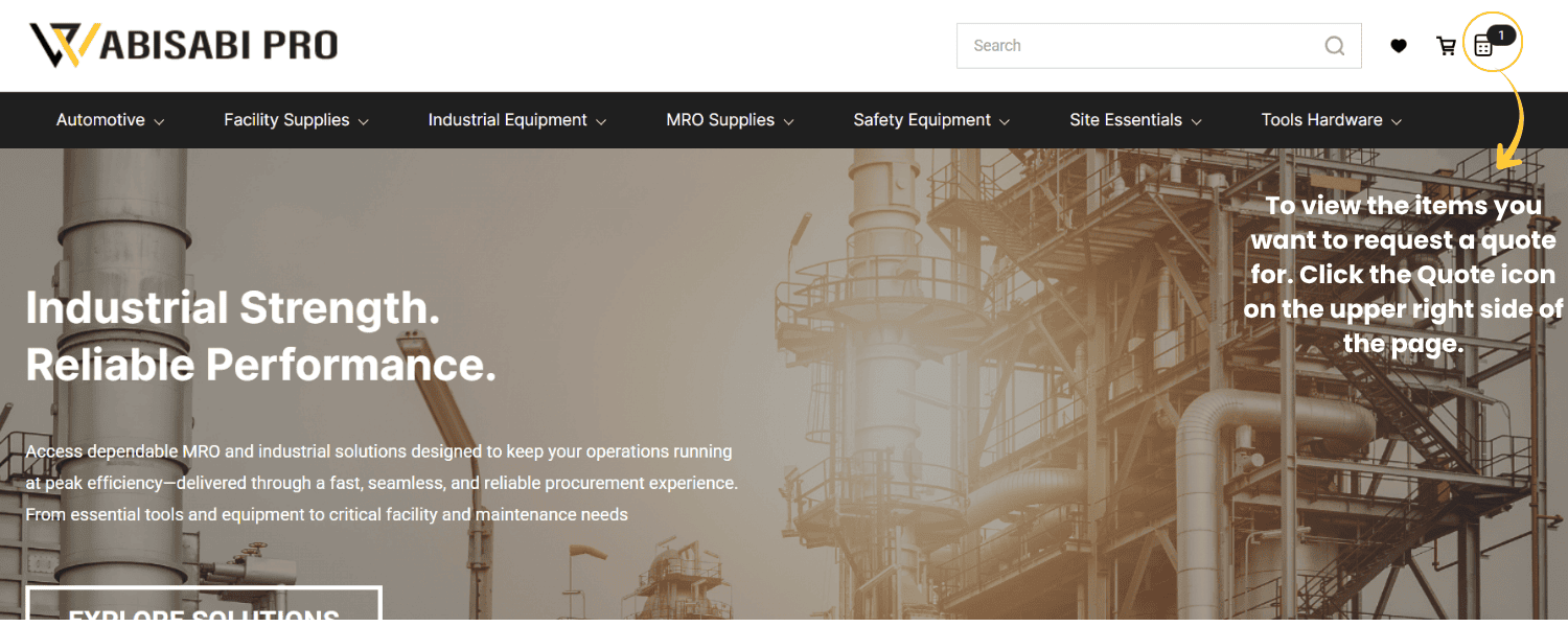 Search Our Extensive Product Catalog --> Add Product to Quote --> Submit Quote Request